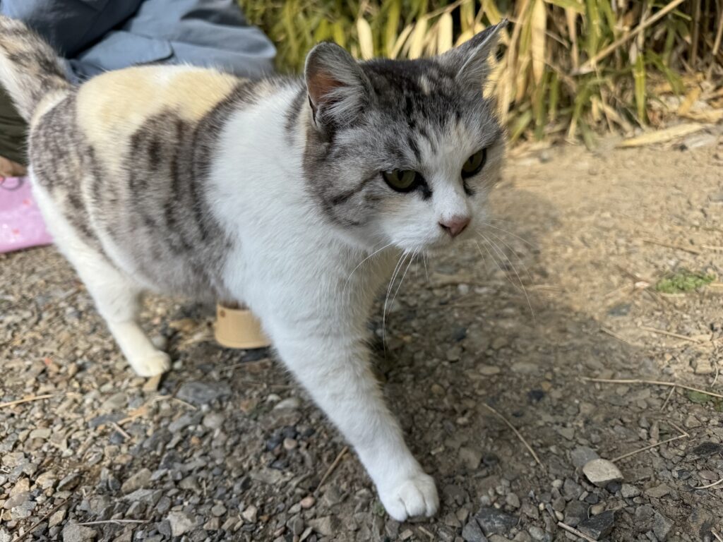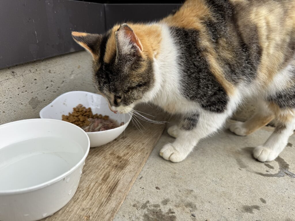 数軒の民家がある静かなエリアで暮らしているみけちゃん。とても人懐っこく、穏やかな子。TNR後も食欲旺盛でした!毎日ご飯を頂けるおうちがあるので安心です。みけちゃん気を付けて遊ぶんだよー。